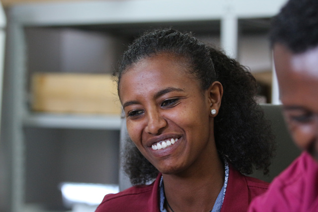 LG전자 서비스센터에서 실습 활동중인 2학년 학생이 미소짓고 있다