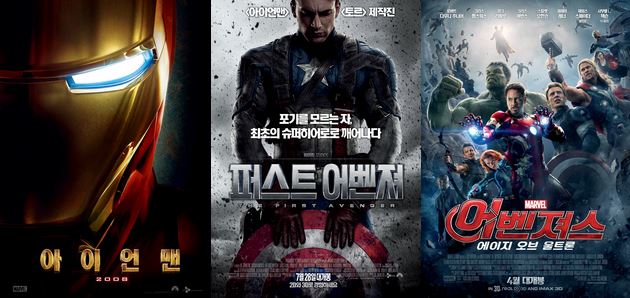 영화 아이언맨, 퍼스트 어벤져, 어벤져스 포스터
