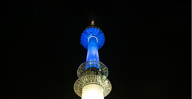 파란 불빛으로 서울의 밤을 밝히는 남산타워