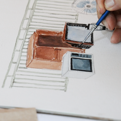 이찬재 쓰레기 분리수거하는 날에 내려가 보면 아주 괜찮은 것들, 멀쩡한 것들, 가구나 전자제품, 부엌 살림 들을 버리더라구요. 우리는 전쟁을 겪었고 가난 속에 살았던 세대라 그런지 아직 얼마든지 쓸 수 있는 걸 버린다는 게 너무 아깝고 안타까웠어요. 그런 마음을 담아 그린 그림이에요. 그래서 처음에는 책꽂이나 탁자, 화분들을 많이 주워오기도 했어요. 지금은 놓을 곳이 없어서 더 가져오지 못하고 있지만요.
