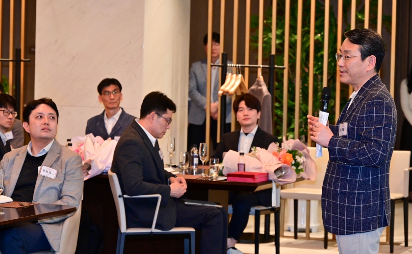 ![조주완 CEO가 마곡 LG사이언스파크에서 열린 임명식에서 신임 연구/전문위원들에게 축하와 격려를 전하고 있다.