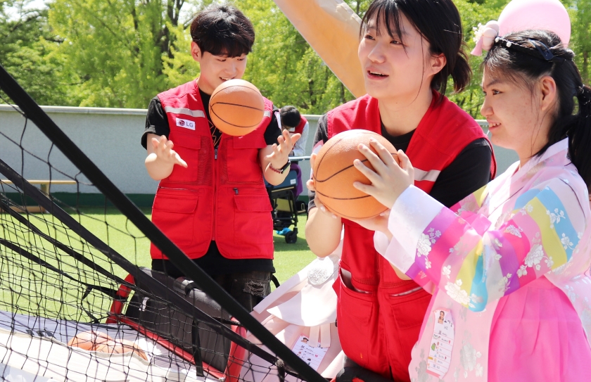 봉사단은 장애 아동·청소년들과 짝을 이뤄 다양한 체험 활동을 진행했다. 에어바운스를 비롯해 ▲보물찾기 ▲농구 ▲페이스페인팅 ▲포토존 ▲물고기잡기 등 다양하게 조성한 체험부스에서 추억을 쌓았다.