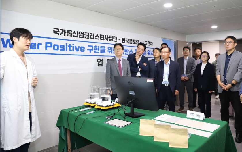 LG전자는 26일 오후 대구 소재 국가물산업클러스터 글로벌비즈니스센터에서 국가물산업클러스터사업단 및 한국물포럼과 ‘워터 포지티브(Water Positive) 구현을 위한 저탄소 미네랄 워시 시범사업 업무 협약(MOU)’을 체결한다. 협약식에는 LG전자 키친솔루션사업부장 백승태 부사장, 국가물산업클러스터사업단 이제원 단장, 한국물포럼 곽결호 총재 등이 참석한다.