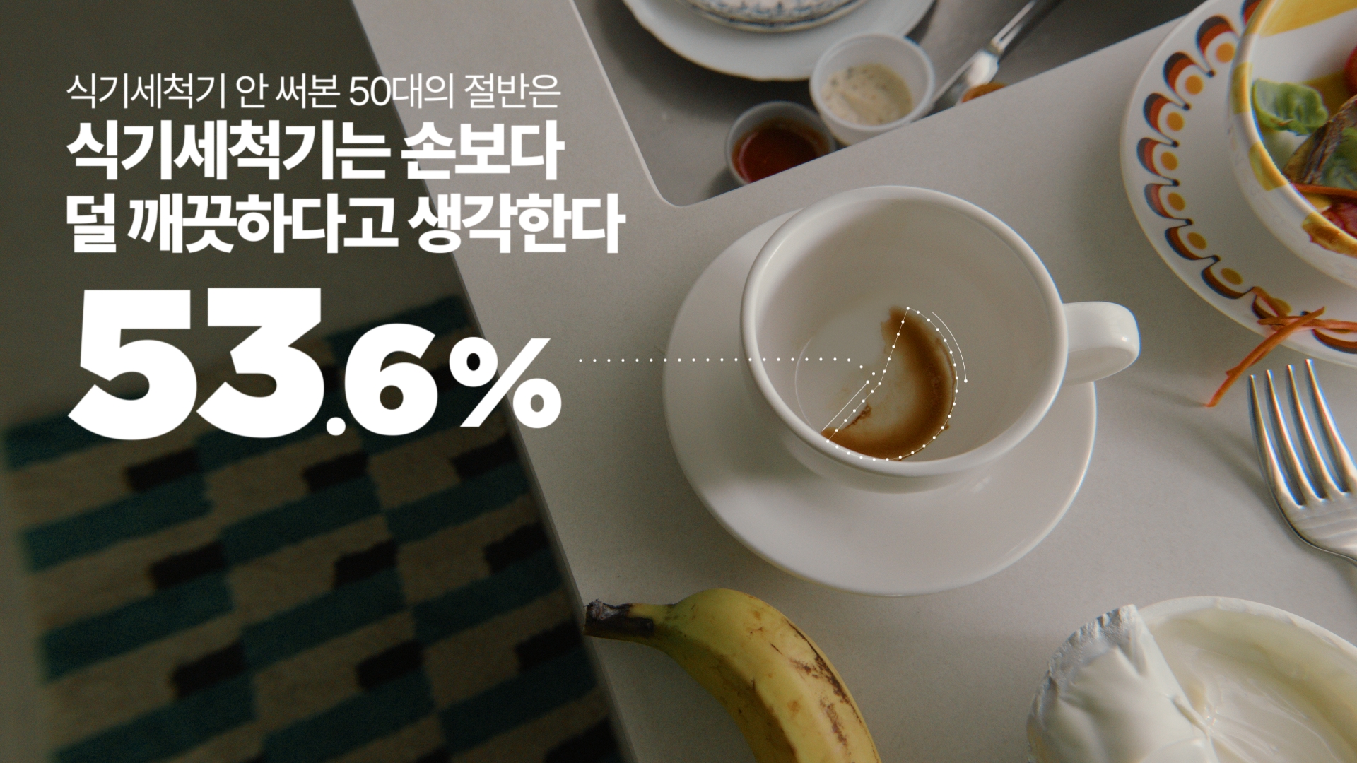 이번 캠페인을 위해 LG전자는 올 상반기 약 두 달 간 30~59세 성인 남녀 총 2만1000명 대상 설거지 라이프스타일 조사를 실시, 이를 바탕으로 ‘육아’ 편, ‘신혼부부’ 편, ‘시니어’ 편 등 라이프스타일별 캠페인 콘텐츠를 기획했습니다. 조사 결과 중 눈에 띄는 응답들을 일상적인 상황으로 풀어내 소비자 공감대를 형성하고자 했습니다.