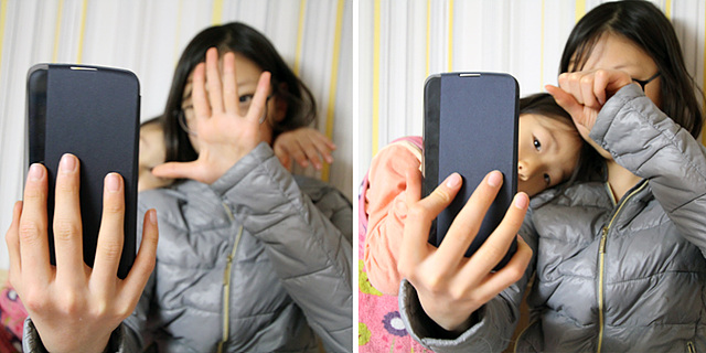 LG 스마트폰의 전매특허같은 제스처 샷에 푹 빠져있는 아이들입니다.
