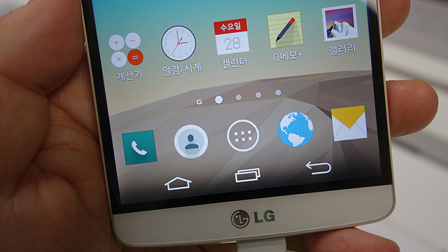 TV처럼 화면에 집중하기 위해서 하단부와 검은 띠를 구분한 G3의 하단부 모습이다
