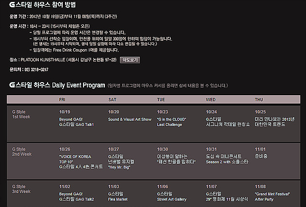 G스타일 하우스 이벤트 프로그램 일정표 수정