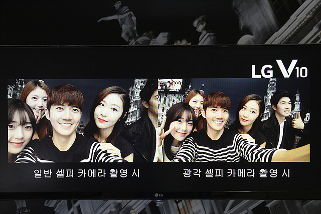 120도 광각카메라로 넓게 촬영 가능한 셀피를 테스트해보는 모습