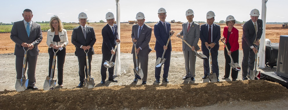 Montgomery County Mayor Jim Durrett, U.S.Congresswoman Marsha Blackburn, U.S.Senator Bob Corker, William Cho President & CEO LG Electronics North America, U.S.Secretary of Commerce Wilbur Ross, Dan Song Global President & CEO LG Home Appliance and Air Solutions Company, Victor Ahn LG Electronics Head of Global Production, South Korean Ambassador to the United States Ho-young Ahn, Mayor of Clarksville Kim McMillan, and Commissioner of Tennessee Department of Economic and Community Development Bob Rolfe break ground at the site of LG Electronics 250 million dollar home appliance manufacturing facility on Thursday, Aug. 24, 2017 in Clarksville, Tenn. The world's most advanced washing machine factory will open in early 2019 bringing 600 US jobs to the area. (Frederick Breedon/AP Images for LG Electronics USA)