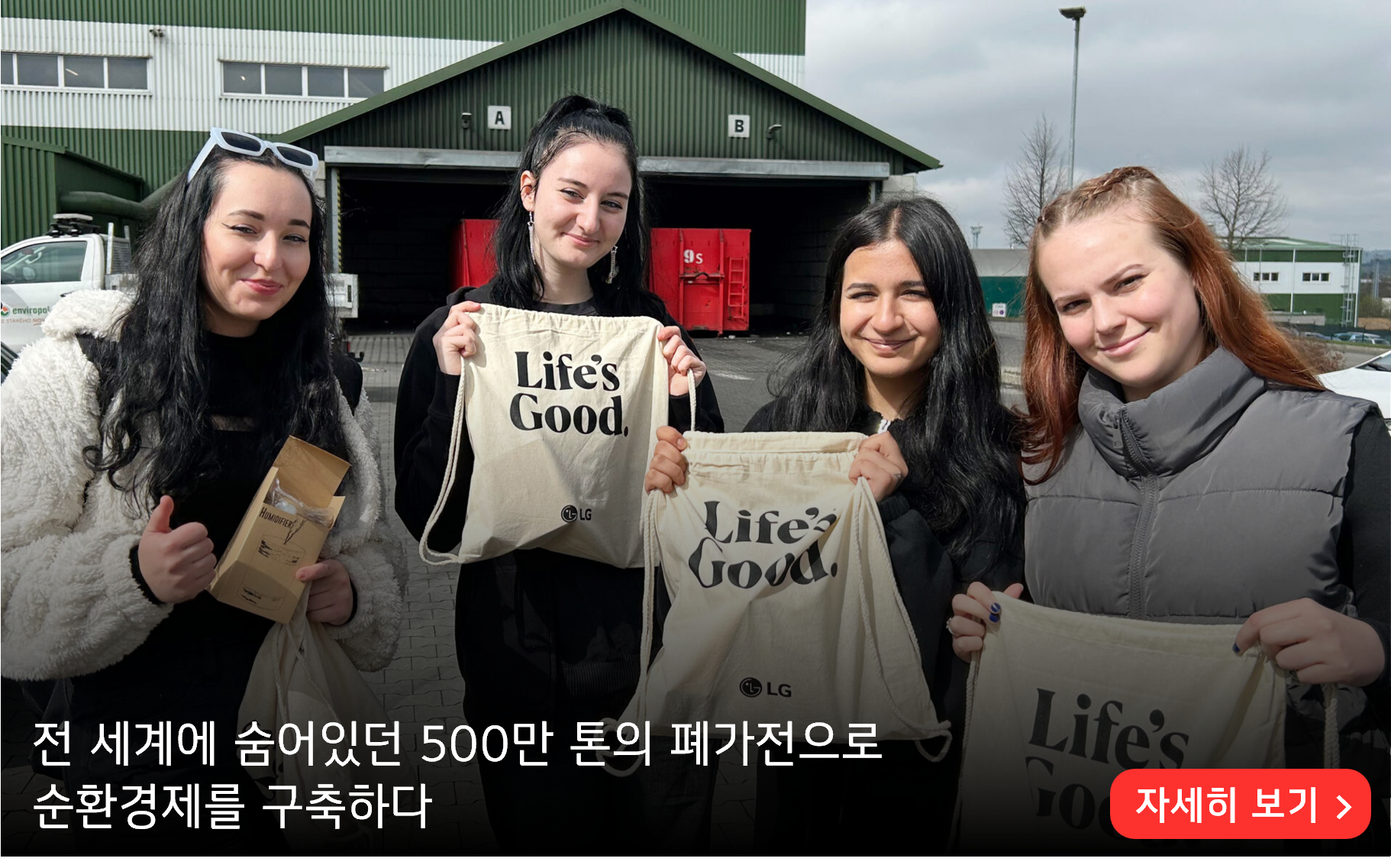 Vol. 217 LG전자, 500만 톤의 폐가전으로 실현하는 ‘모두의 더 나은 삶’ 2025-05-13 LG전자 전 세계에 숨어있던 500만 톤의 폐가전으로 순환경제를 구축하다 콘텐츠 공유하기페이스북 (새 창에서 열림)트위터 (새 창에서 열림)카카오톡 (새 창에서 열림)URL 복사 태그 5월1주차ESGLG올레드에보LG전자SDV모빌리티인사이드순환경제위클리뉴스인도지속가능성환경캠페인 LG전자의 모든 콘텐츠는 자유롭게 이용하실 수 있습니다. 다만 일부 글과 이미지는 저작권과 초상권을 확인하셔야 합니다.운영정책 보기