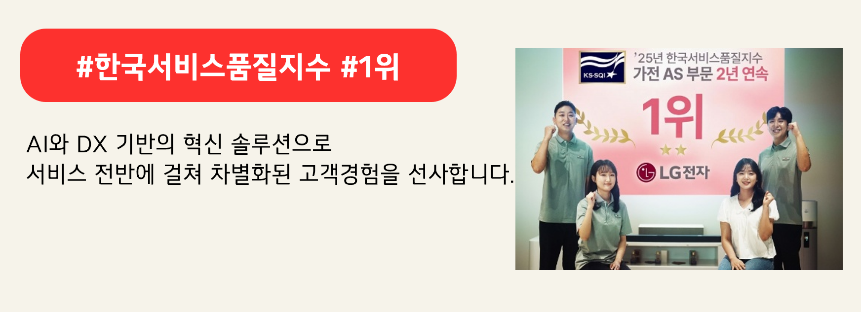 Vol.225 경계를 허물고 더 나은 삶을 만들어가는 LG전자! 2025-07-08 LG전자 콘텐츠 공유하기페이스북 (새 창에서 열림)트위터 (새 창에서 열림)카카오톡 (새 창에서 열림)URL 복사 태그 #6월 4주차#KS-SQI#LG전자#뉴스레터#등대공장#모빌리티인사이드#볼드무브#슈필라움#스마트물류#애자일#위클리뉴스#접근성#차별적고객가치#컴포트키트#한국서비스품질시주전장부품 LG전자의 모든 콘텐츠는 자유롭게 이용하실 수 있습니다. 다만 일부 글과 이미지는 저작권과 초상권을 확인하셔야 합니다.운영정책 보기