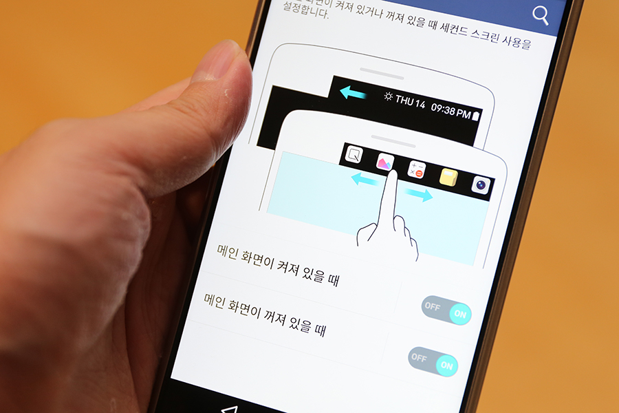 ‘메인 화면이 켜져 있을 때’와 ‘메인 화면이 꺼져 있을 때’로 구분되어 있는 세컨드 스크린 옵션