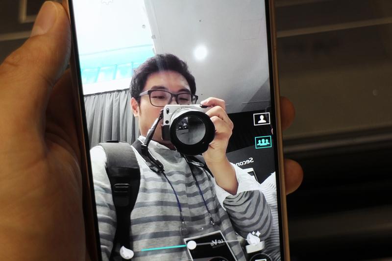 광각 카메라로 셀카를 찍을 시 화면. 일반 카메라보다 넓은 화면이 눈에 띈다.